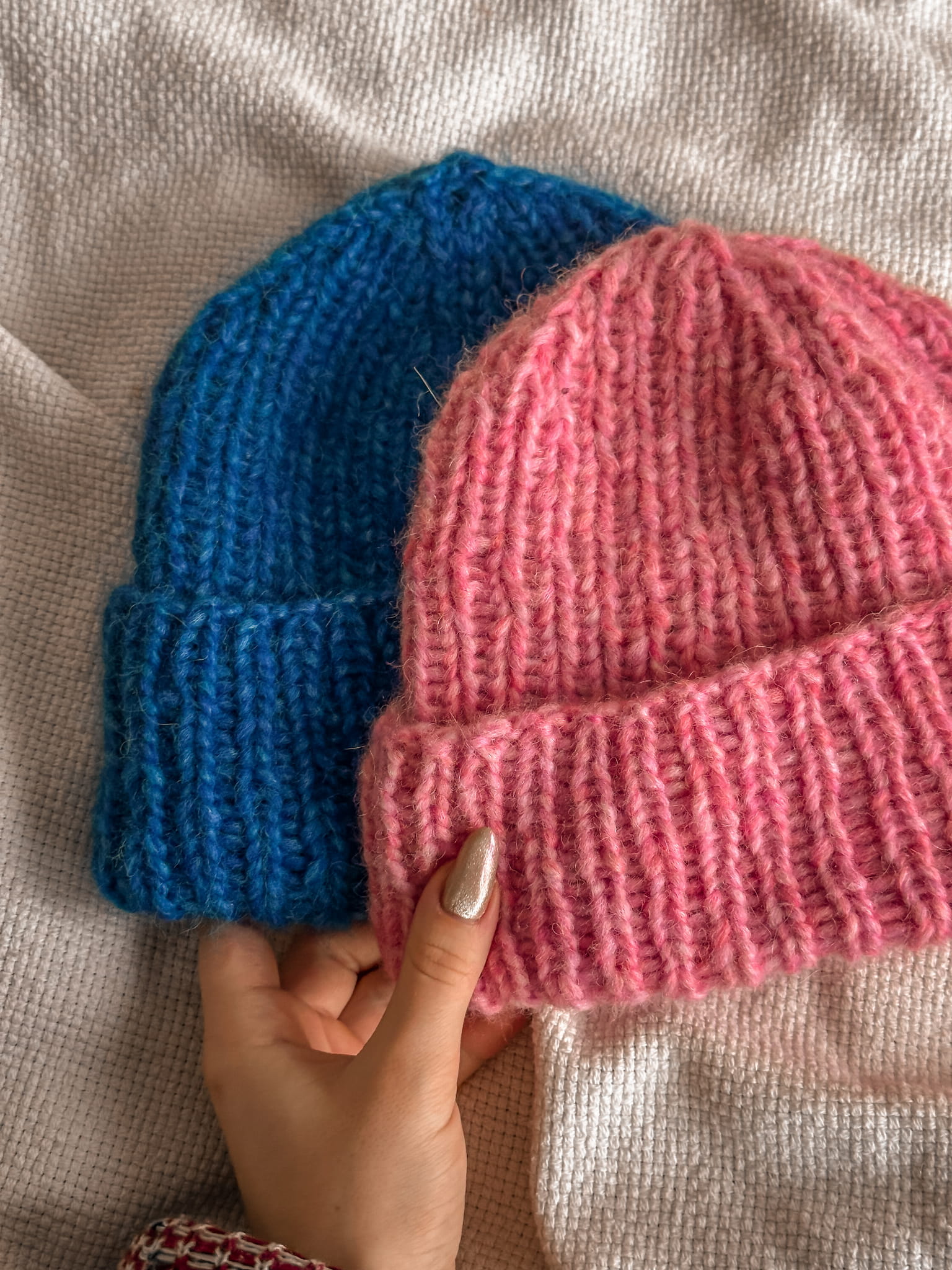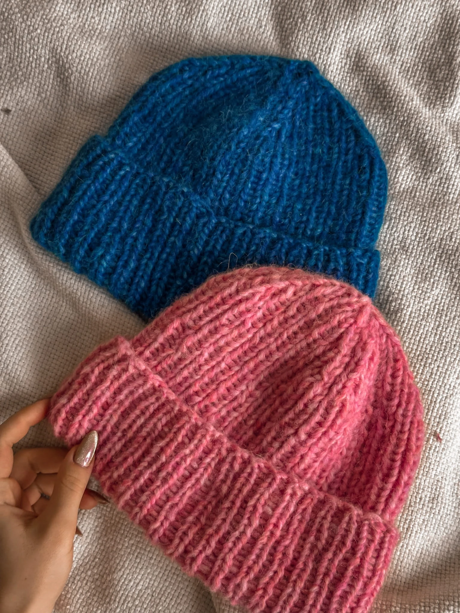Available in vibrant colors like pink and blue, these beanies are ideal for adding a pop of color to your winter wardrobe. The ribbed design ensures a snug yet flexible fit, making them both functional and fashionable.