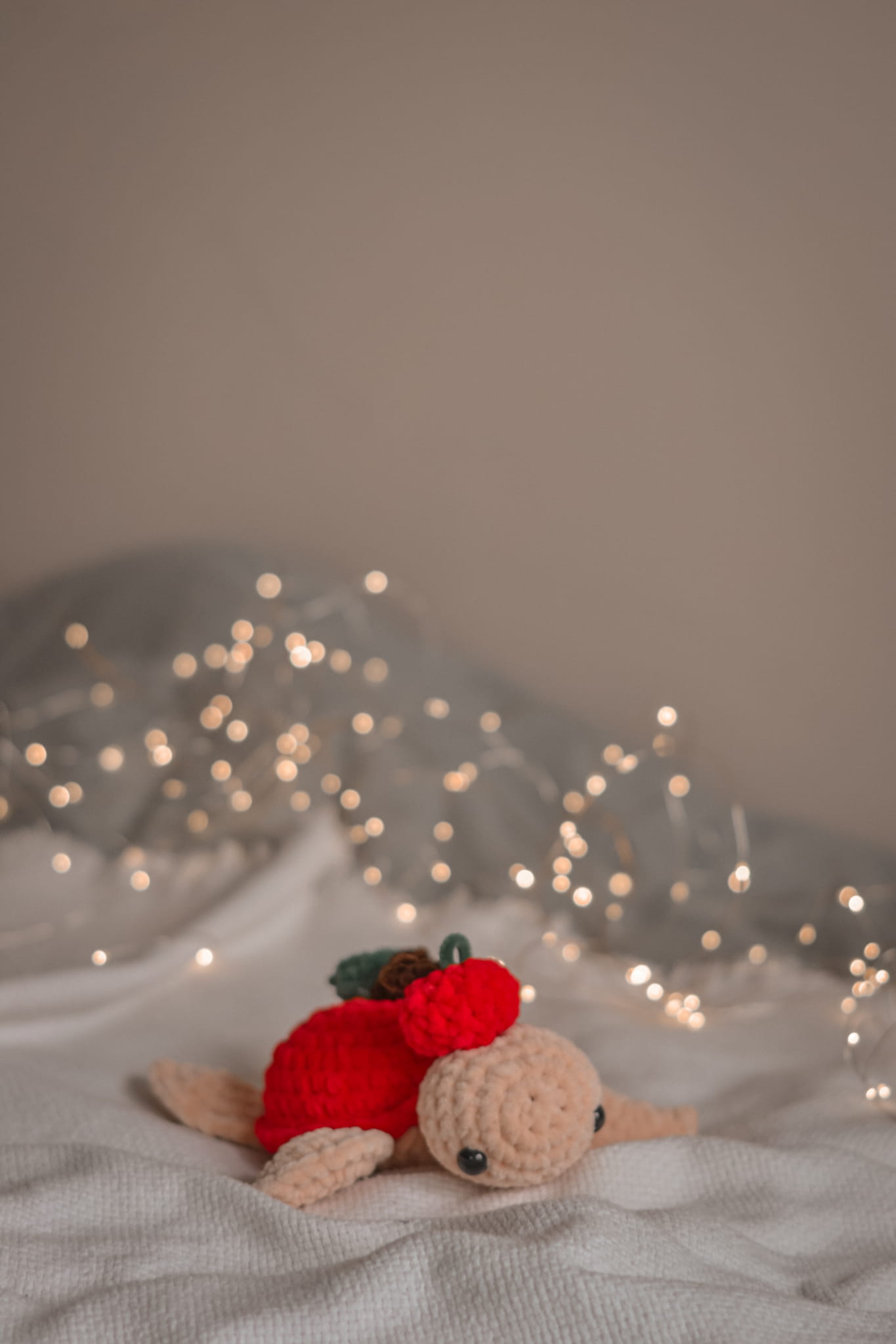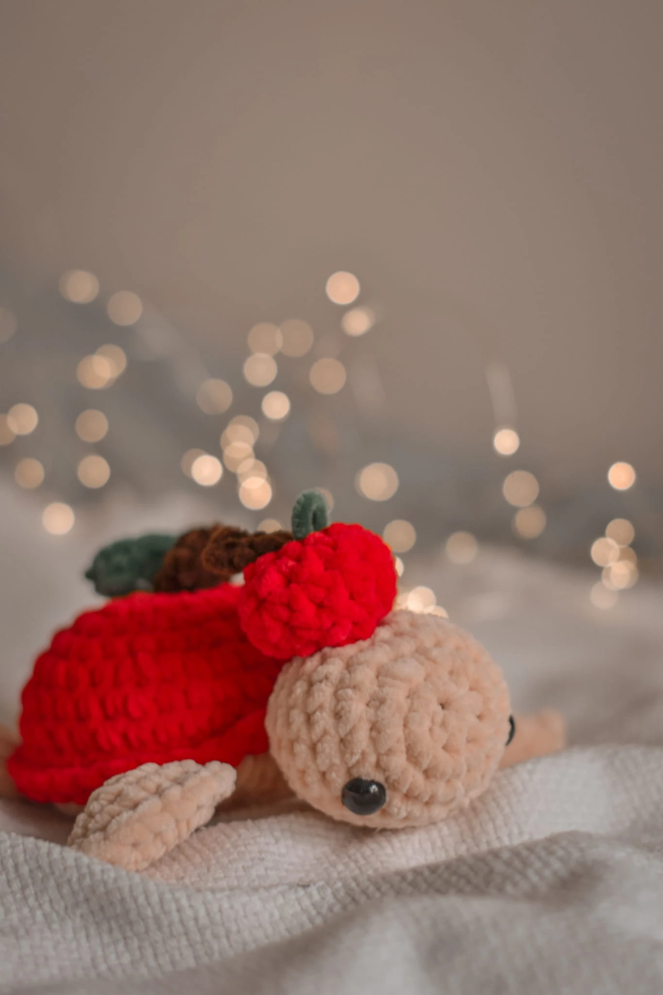 This adorable turtle with an apple shell is a combination of fruity charm and a delicate little animal that will delight everyone! The crochet pattern will allow you to create a 23 cm (approximately 9 inches) plush toy with a unique look, which will be a great addition to any collection or an original gift. The minimal amount of sewing makes the creation process quick and enjoyable, perfect for both beginners and more advanced crocheters.