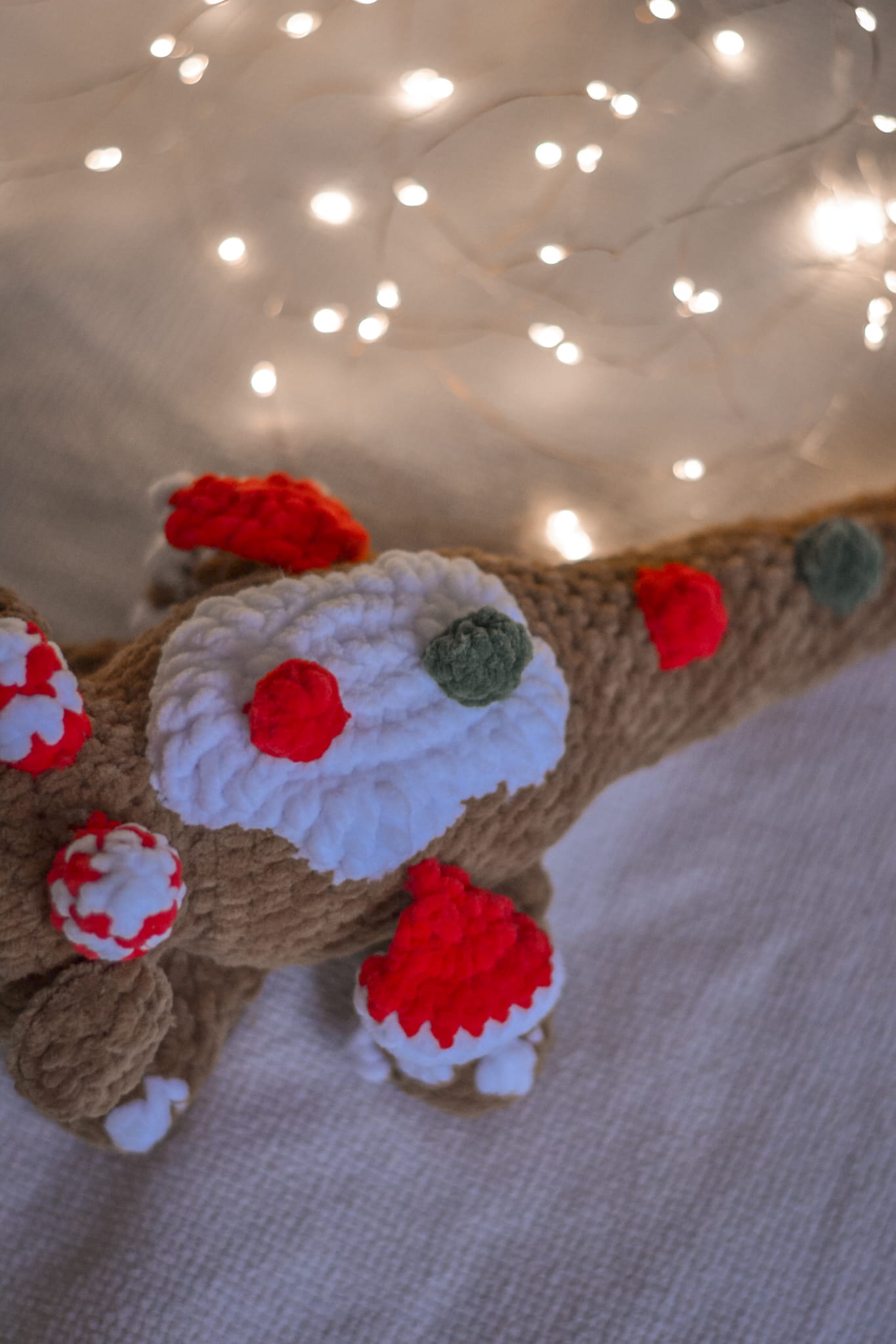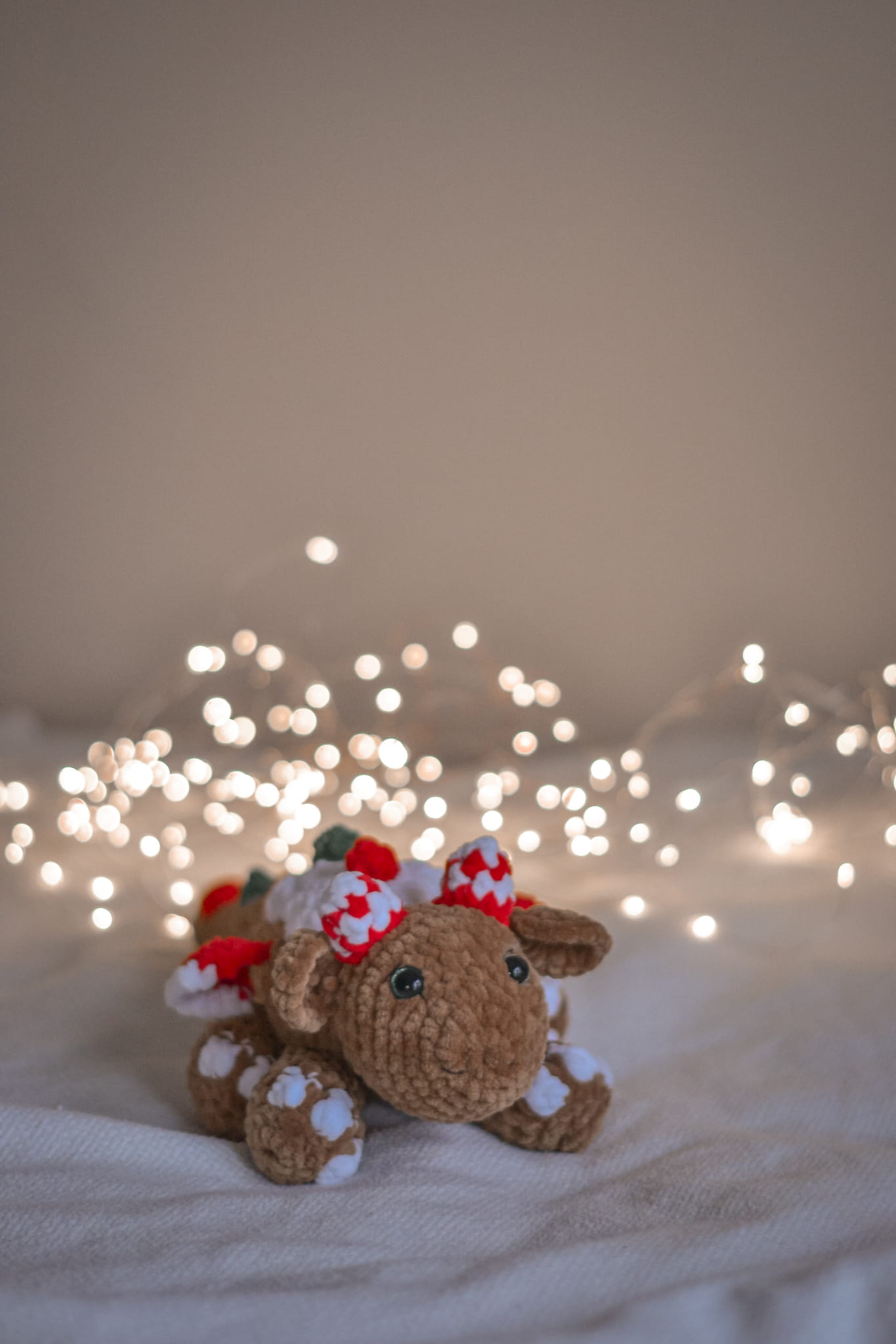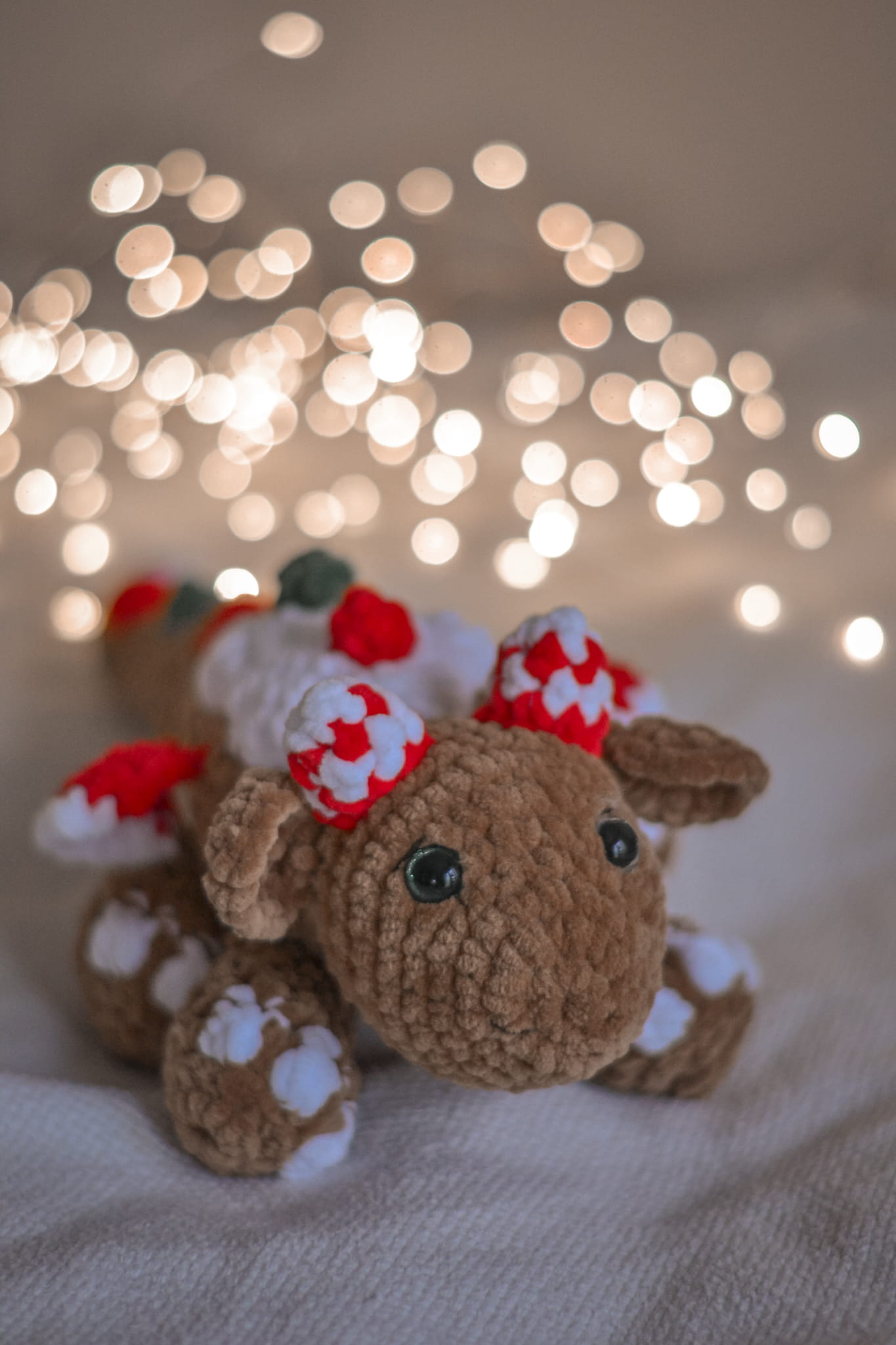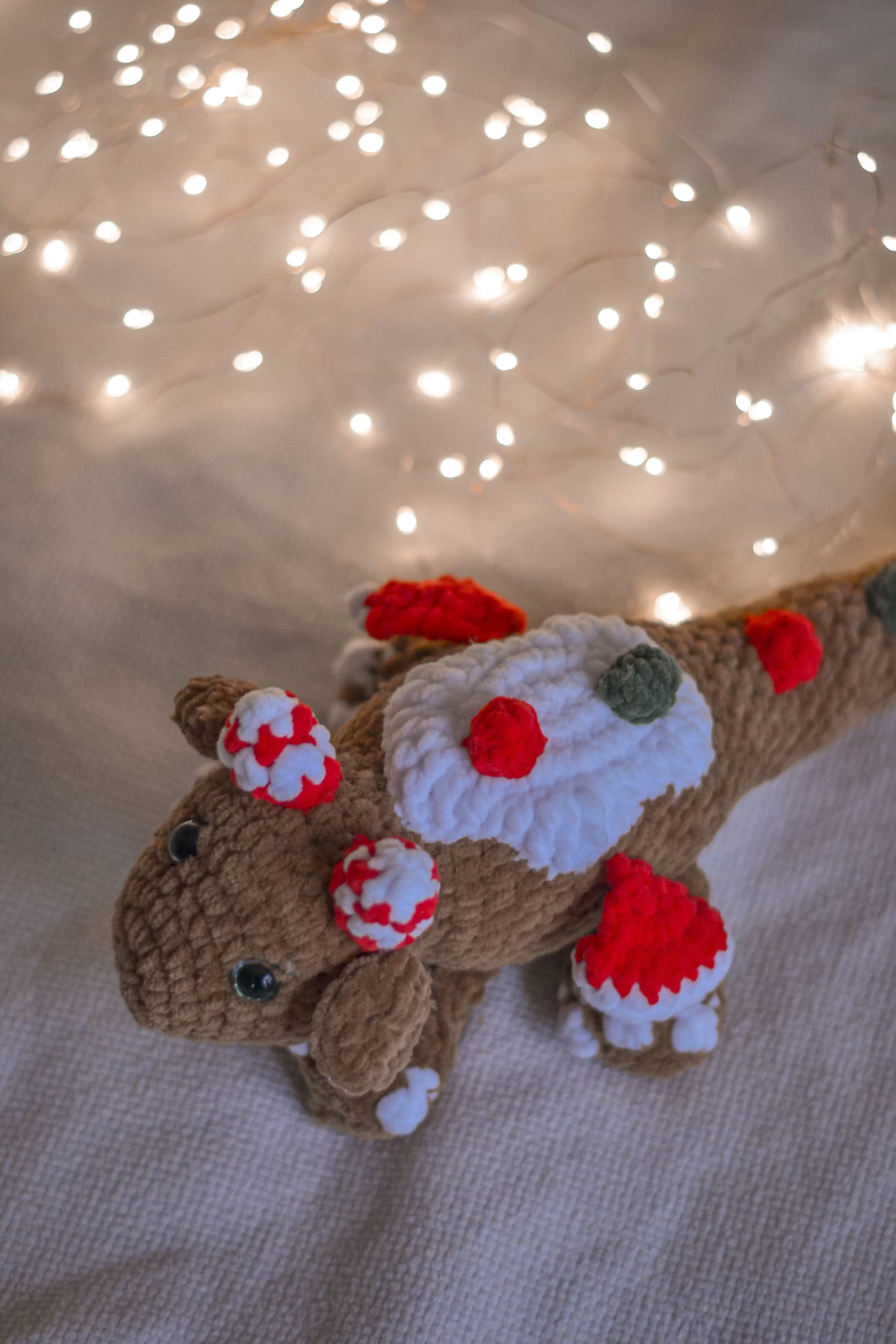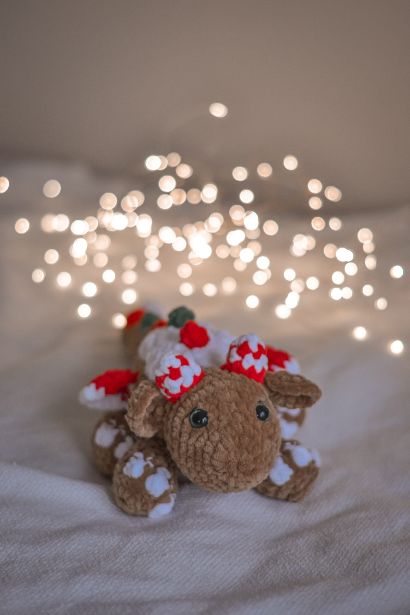 A dragon sweet enough to eat! This handmade Gingerbread Dragon features "icing" on its back and candy-cane horns. Soft, cuddly, and magical – the perfect unique Christmas gift.