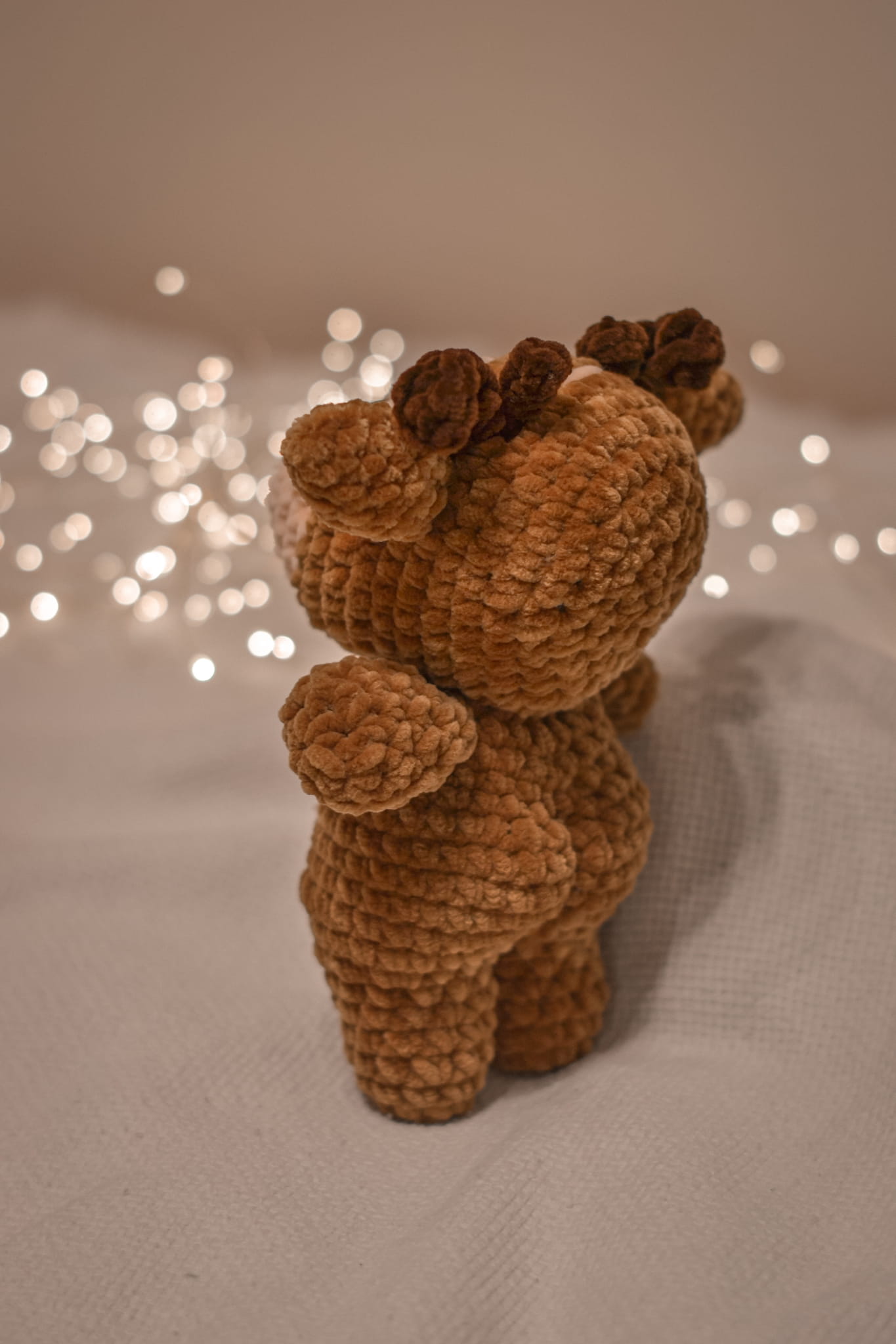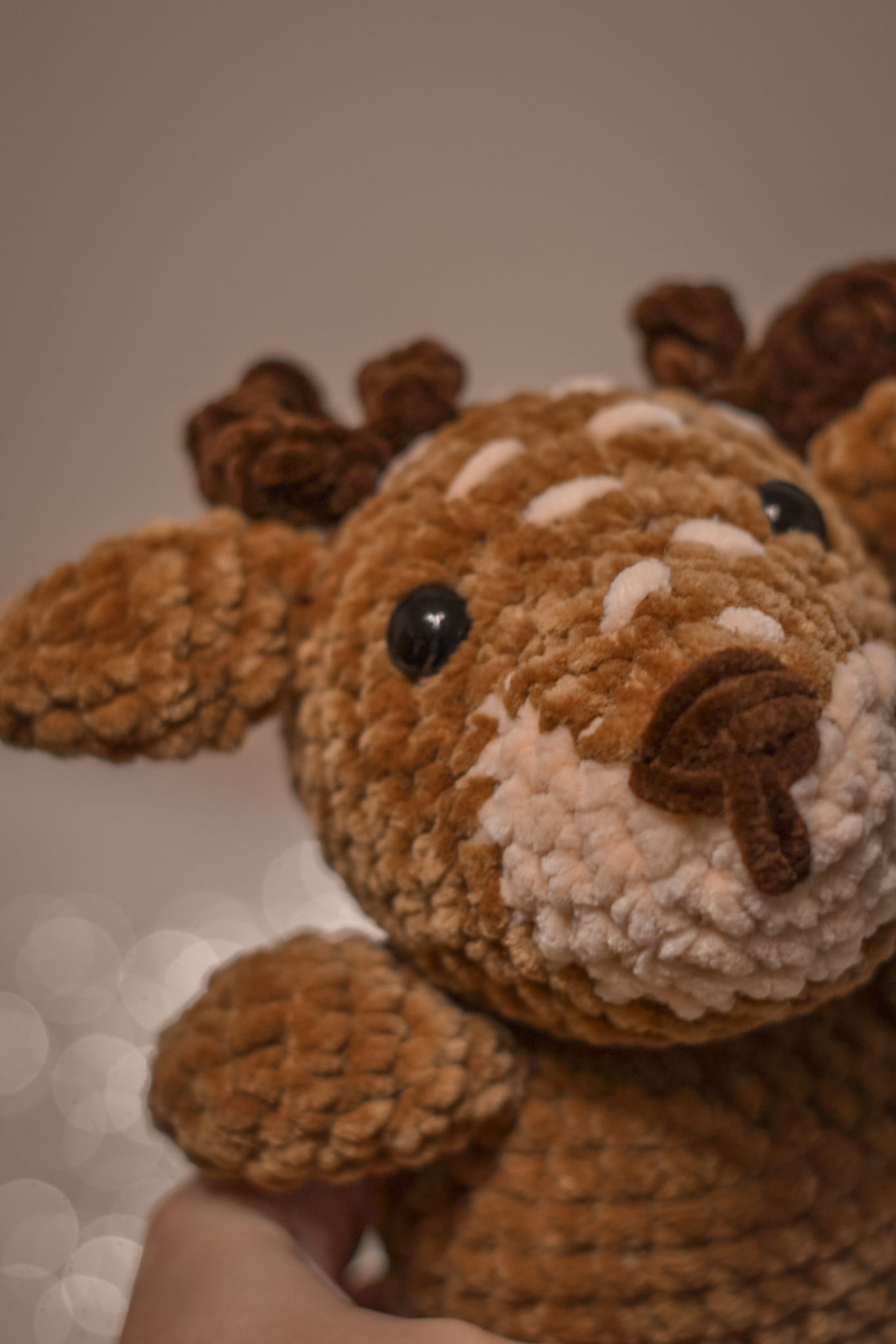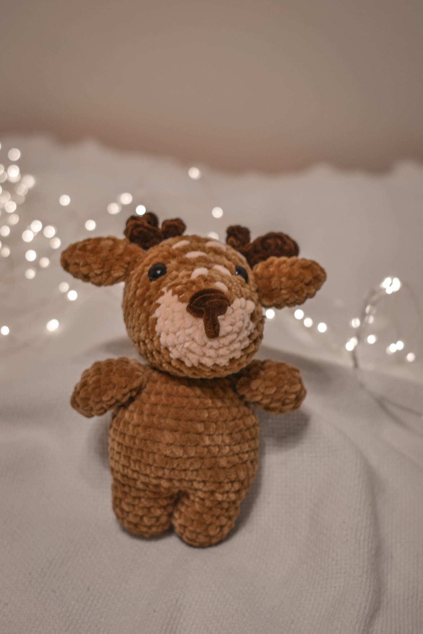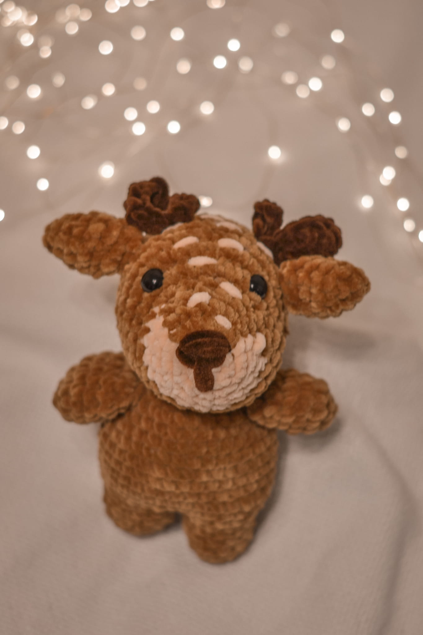 Meet your new forest friend! This handmade crochet Reindeer (Fawn) features cute spots and soft antlers. Made from ultra-soft velvet yarn, it’s the perfect cuddly gift for Christmas or a woodland nursery.