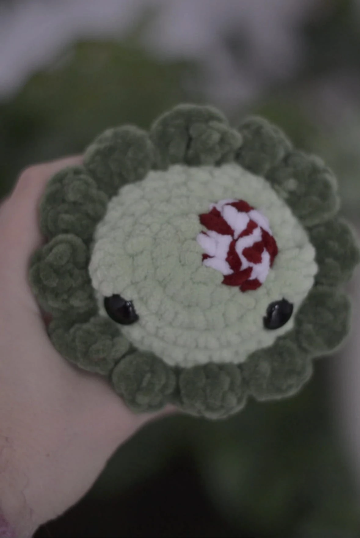 Minty fresh and super cute! This handmade "Lollipop Frog" features a festive red and white striped body and a soft velvet texture. The perfect kawaii stocking stuffer.