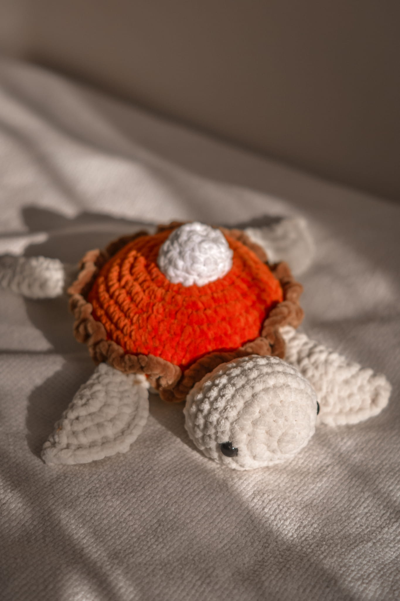 Handmade crochet plush toy – Turtle with a Pumpkin Shell.