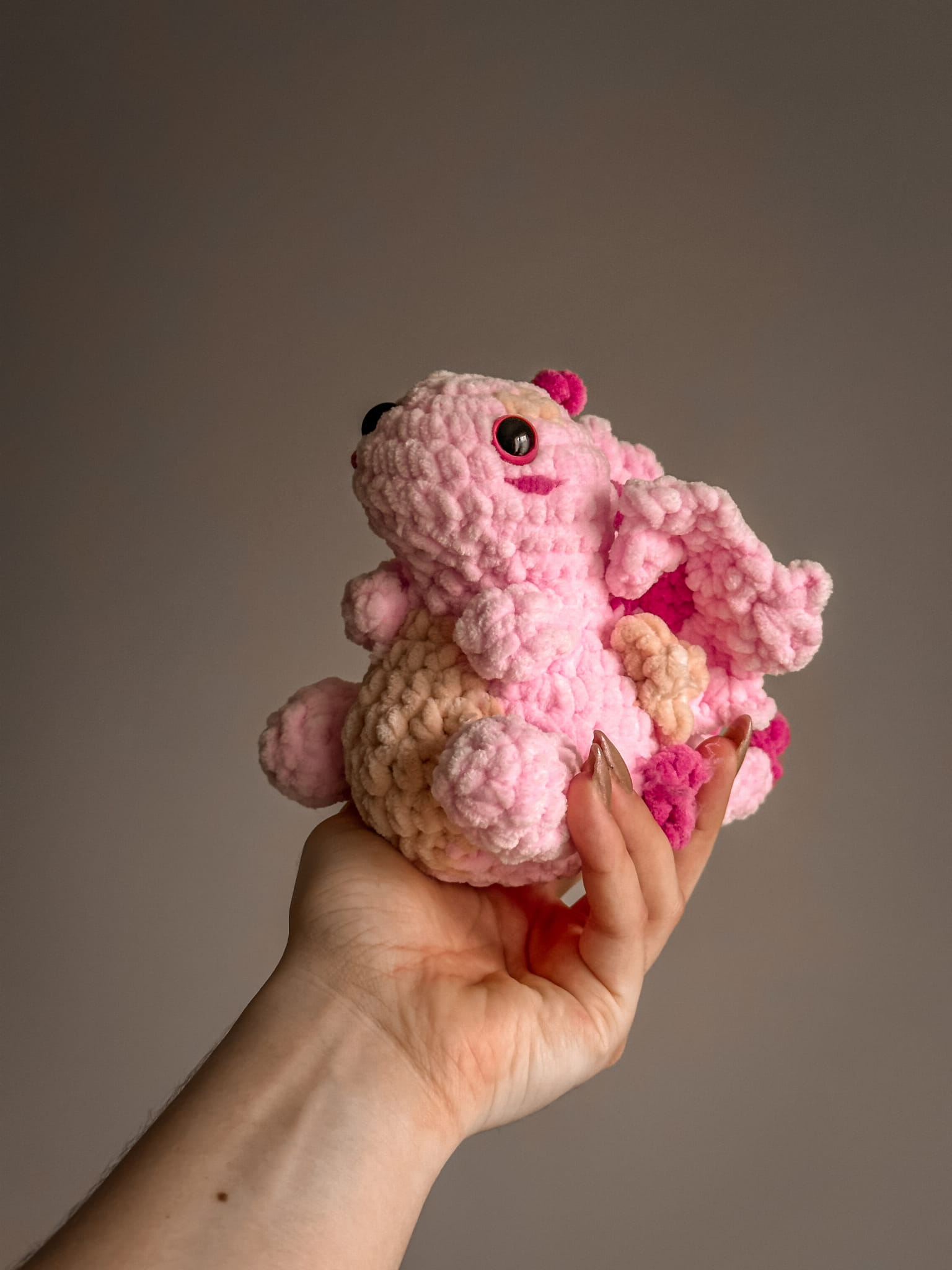 Meet this adorable crocheted dragon that will steal the hearts of both children and adults! Handcrafted from soft plush polyester yarn, it’s the perfect companion for playtime and a charming decoration for any room. This unique dragon, measuring 14x10 cm, is not only beautiful but also durable and incredibly soft to touch. A perfect gift for any occasion!