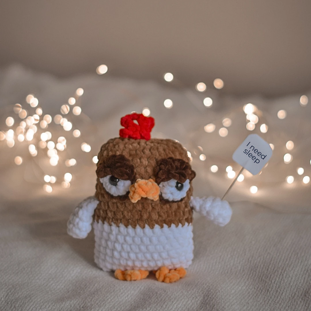Handmade crochet chicken "I Need Sleep"