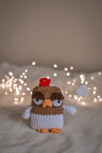 This adorable crochet chicken is the perfect decoration or gift for those who love unique and charming crafts. Handcrafted from soft yarn, it stands out for its meticulous design and playful character. The addition of the "I Need Sleep" sign adds a humorous touch, making it a fantastic gift for anyone who appreciates original handmade creations.
