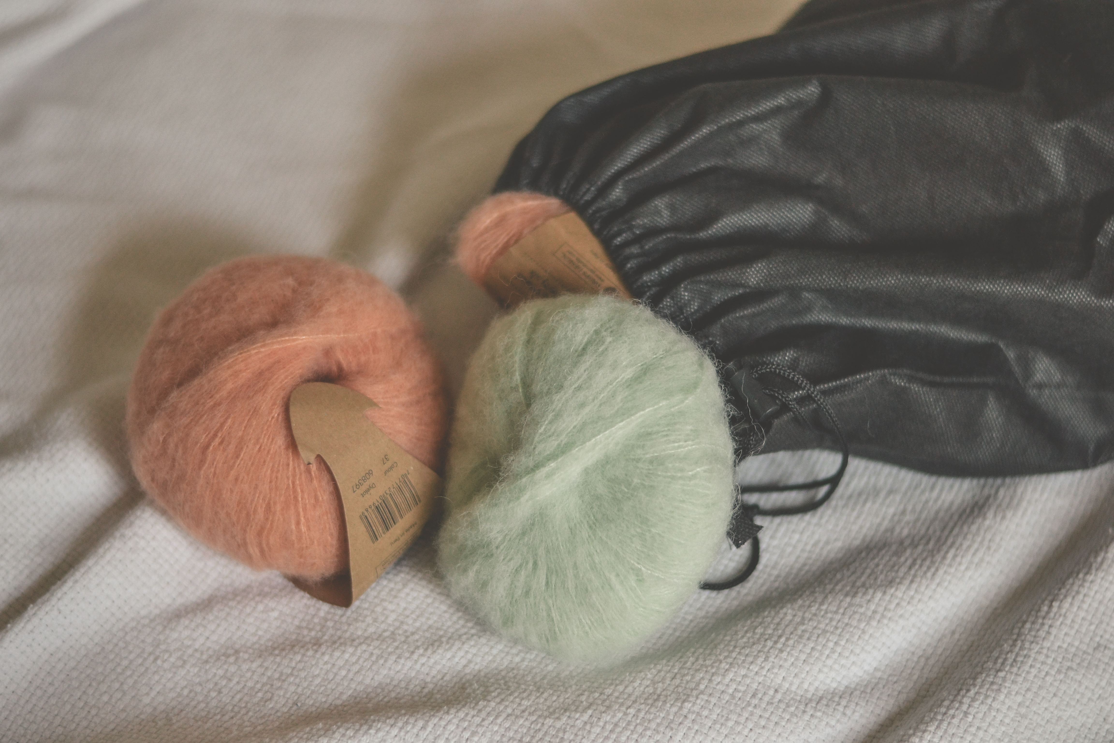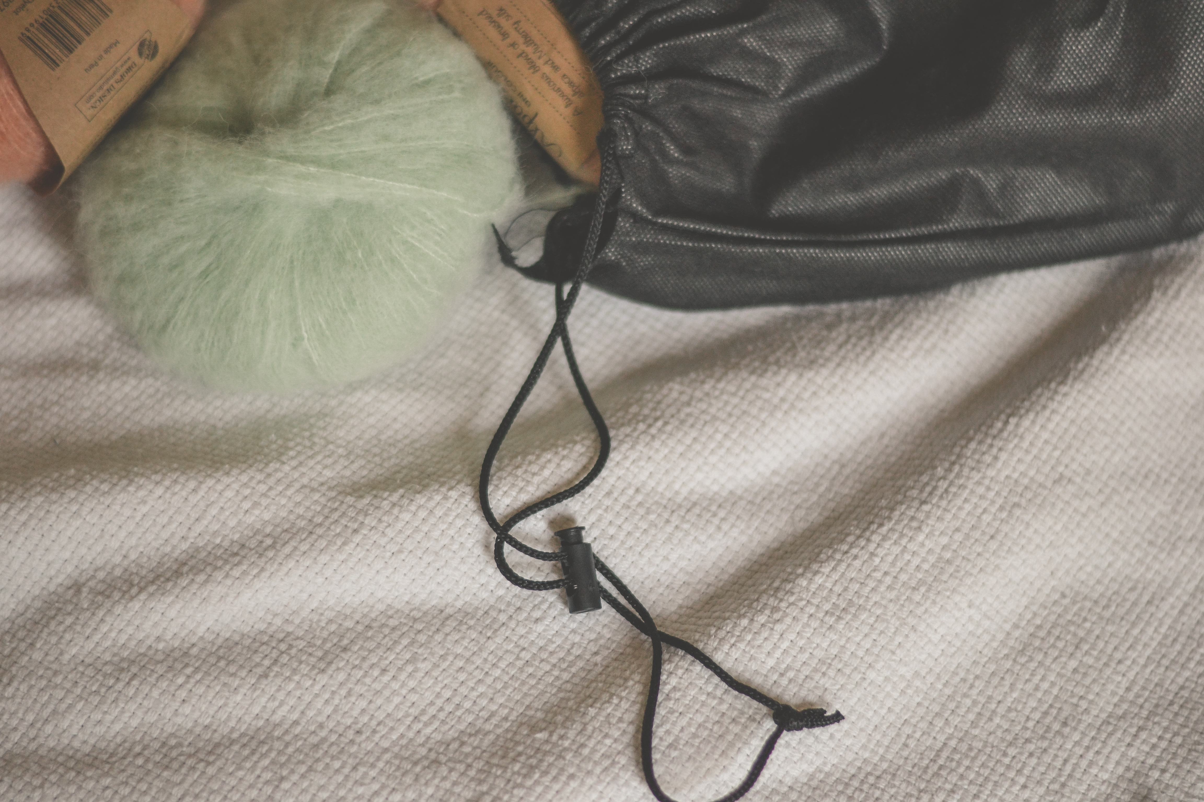 Podstawą jest oczywiście rozpoczęty projekt lub motki przygotowane pod nową robótkę. Ważne jest jednak, w czym je spakujemy. Ja od dawna używam zwykłego worka ze ściągaczem (serio, mój pierwszy był po butach!).