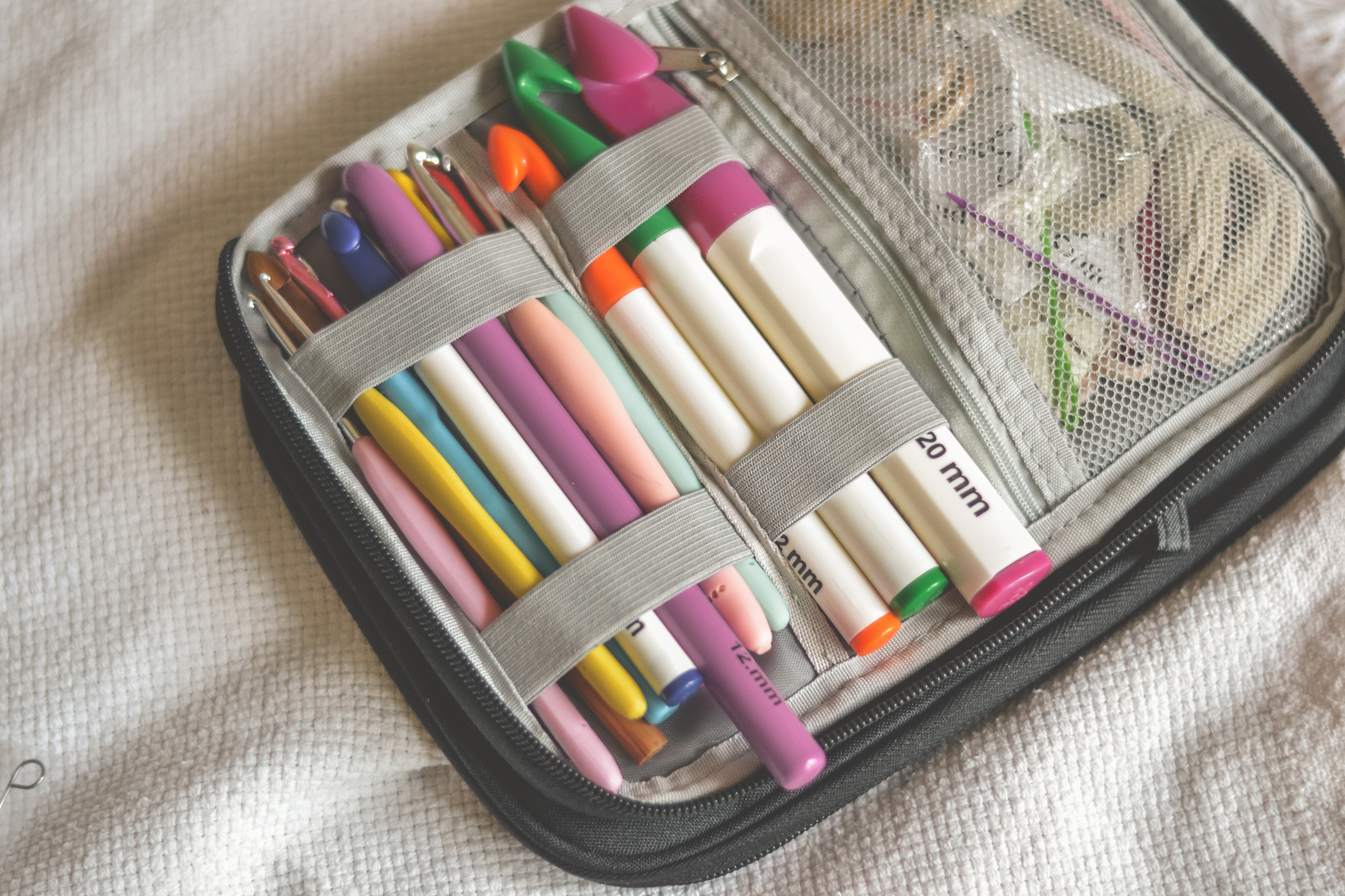 Jeśli na wyjeździe planuję szydełkować, biorę organizer z każdym rozmiarem szydełka. Nie ma nic gorszego niż sytuacja, gdy w trakcie pracy uznasz, że chcesz zmienić rozmiar, a odpowiedniego narzędzia akurat nie masz.