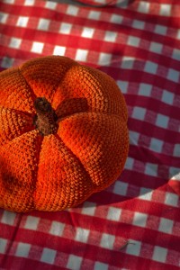 Duża pluszowa dynia – ręcznie robiona poduszka na szydełku.