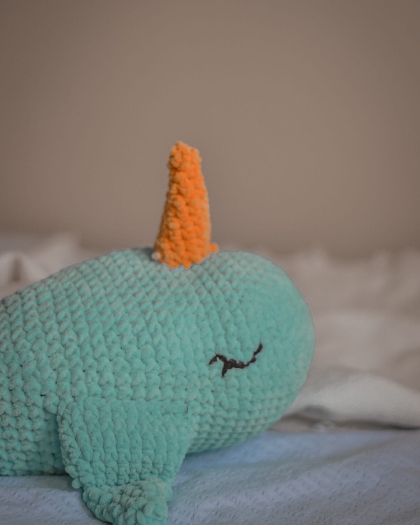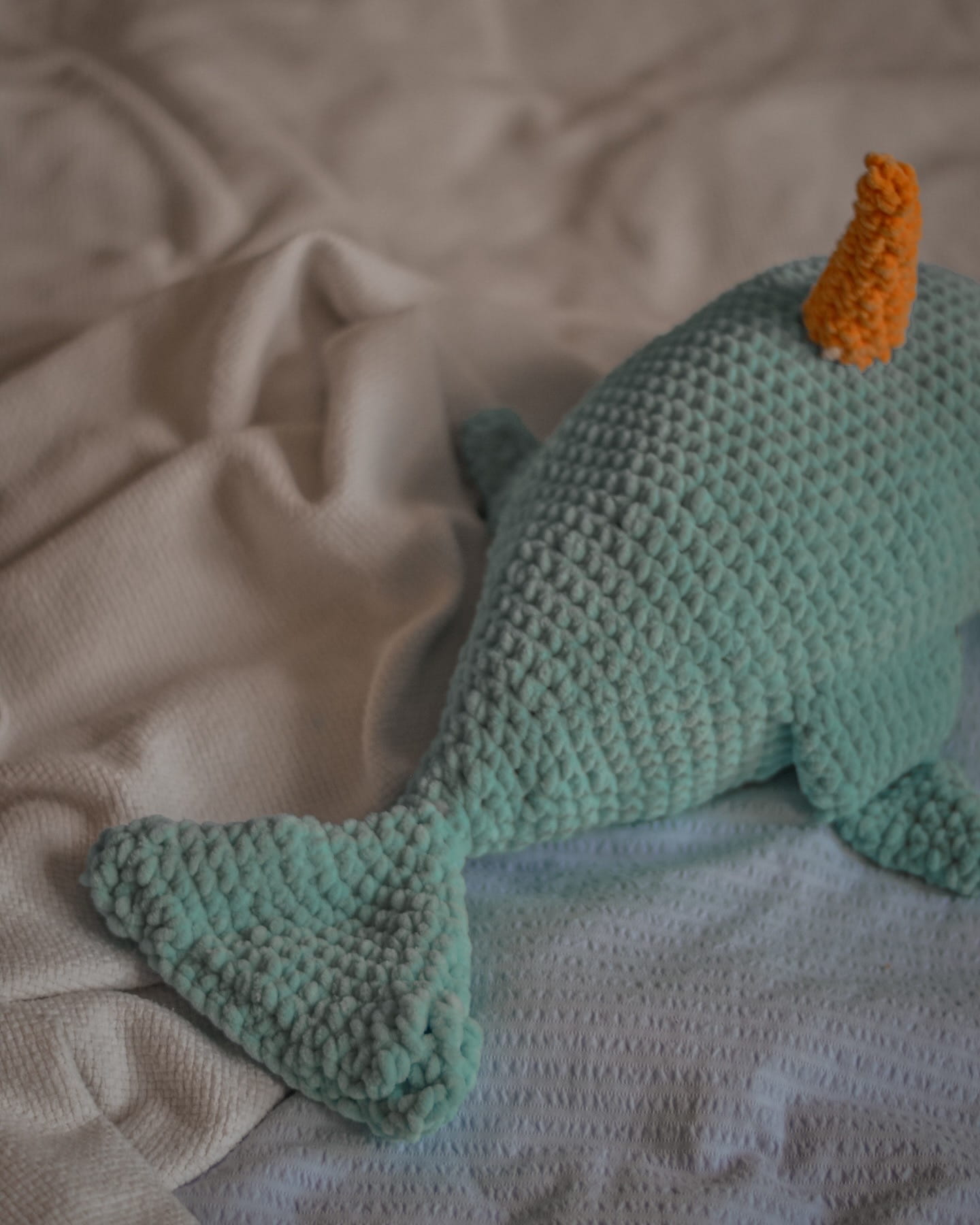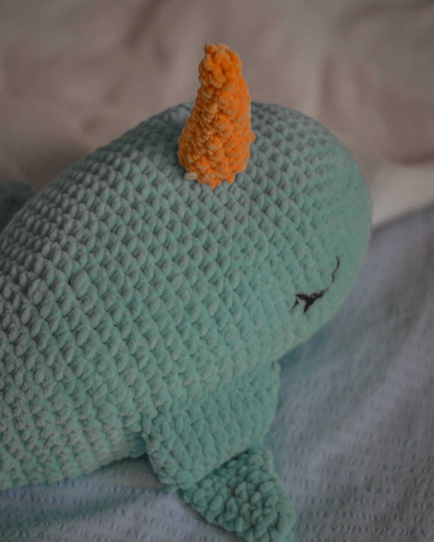 Ręcznie robiona szydełkowa maskotka – Pluszowy Wieloryb Jednorożec