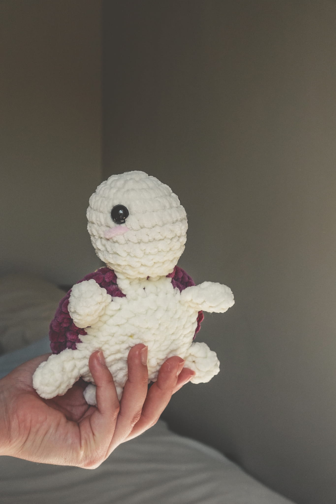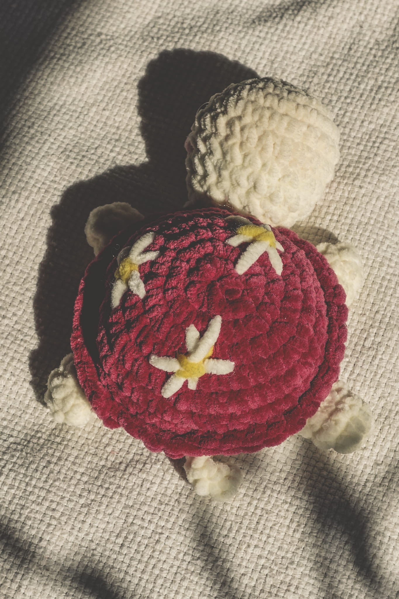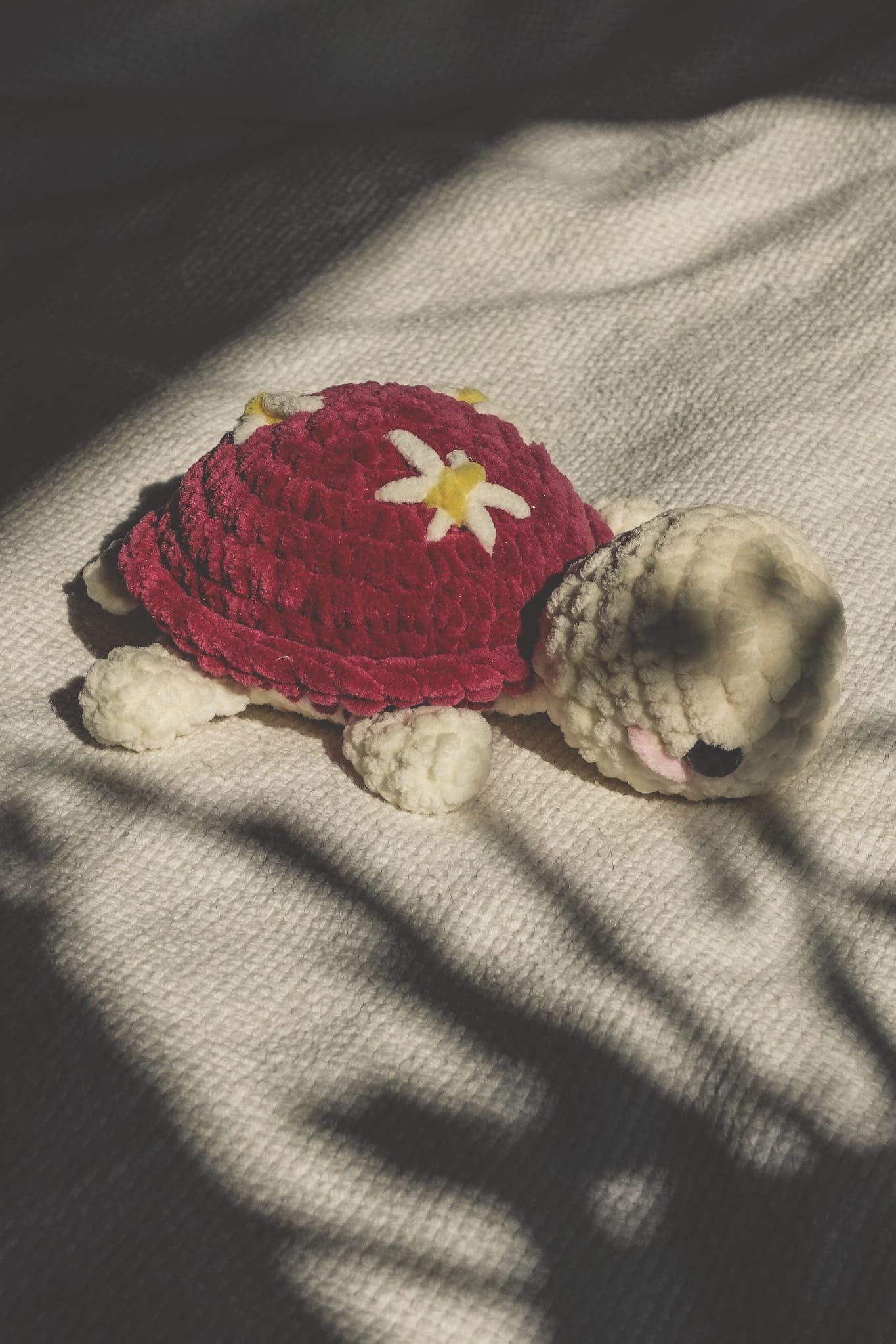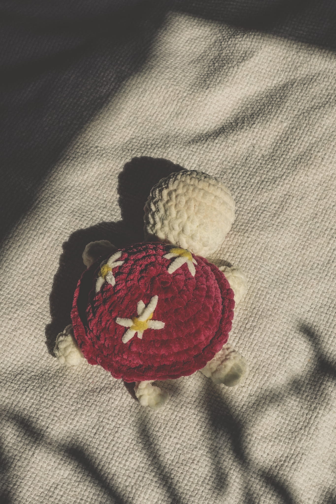 Miękka, ręcznie szydełkowana żółwica to idealna zabawka lub dekoracja dla najmłodszych i nie tylko. Jej bordowa skorupa ozdobiona kwiatkami przyciąga wzrok i dodaje uroku każdemu wnętrzu. Wykonana z wyjątkowo miękkiej, pluszowej włóczki i wypełniona antyalergicznym wkładem, będzie bezpiecznym i stylowym towarzyszem zabaw oraz odpoczynku.
